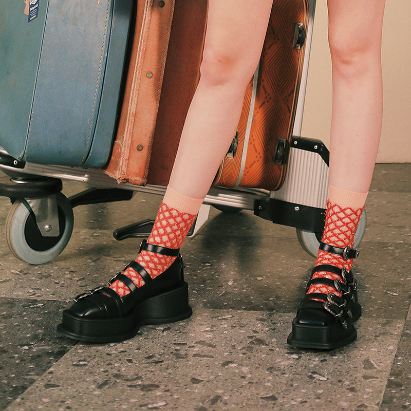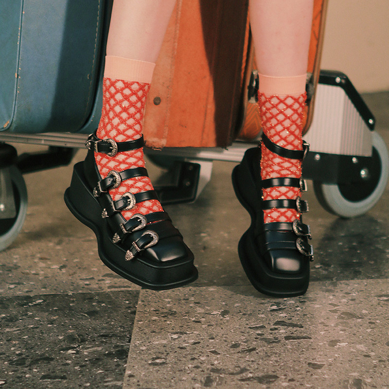 littlegood new product niche design retro small leather shoes women's thick-soled all-match hollow punk style single shoes