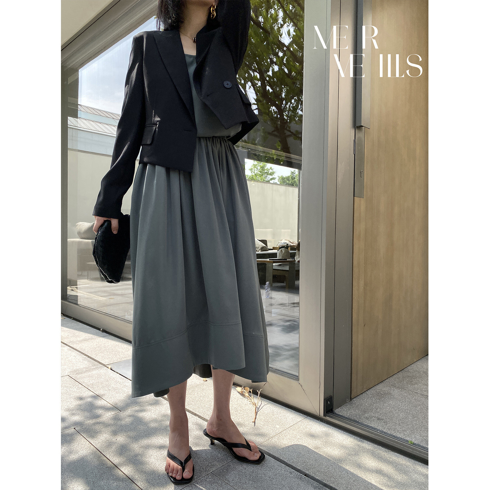 MRS Studios Japan Import fabric Cubic pituitary gas U collar vest half body dress suit Two sets