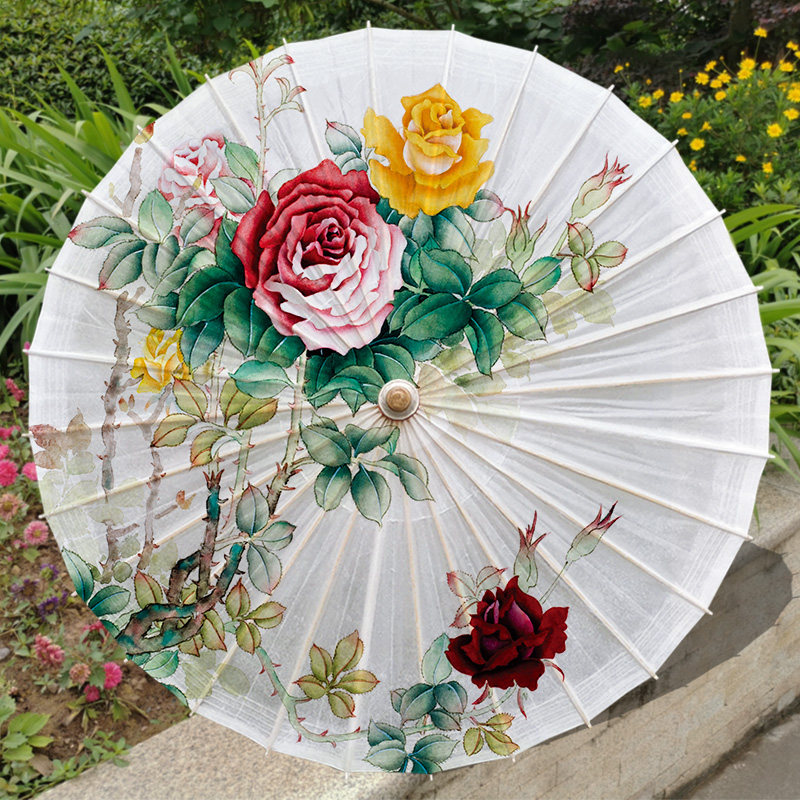 (Rose) Classical Oil Paper Umbrella Female Antique Rainproof Sunscreen Practical Complex Dance Traditional Decoration Props Hanfu Umbrella