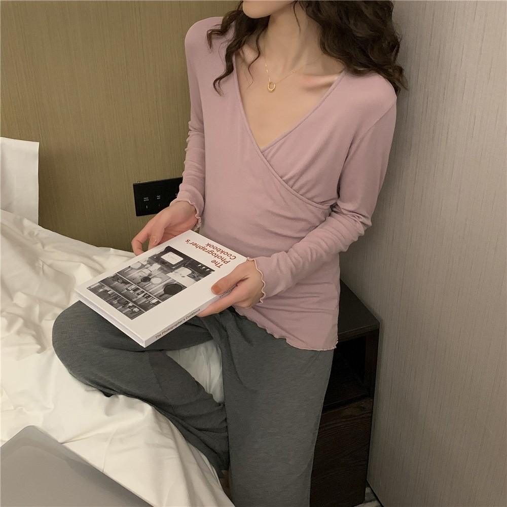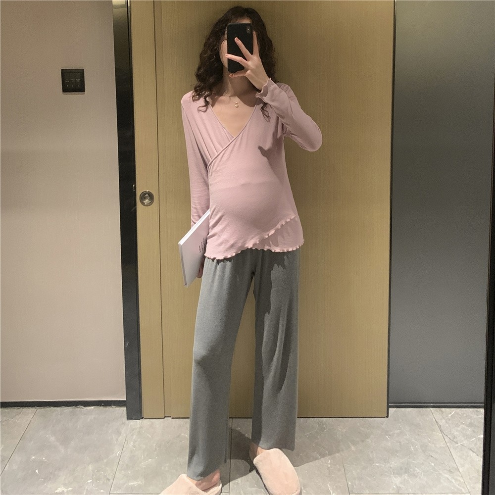 Lunar Subsuit Summer thin Submarine breast-feeding lactation breast-feeding Home Women's spring autumn Pure cotton Modale Pregnant Woman Sleeping in summer clothes