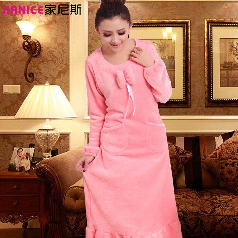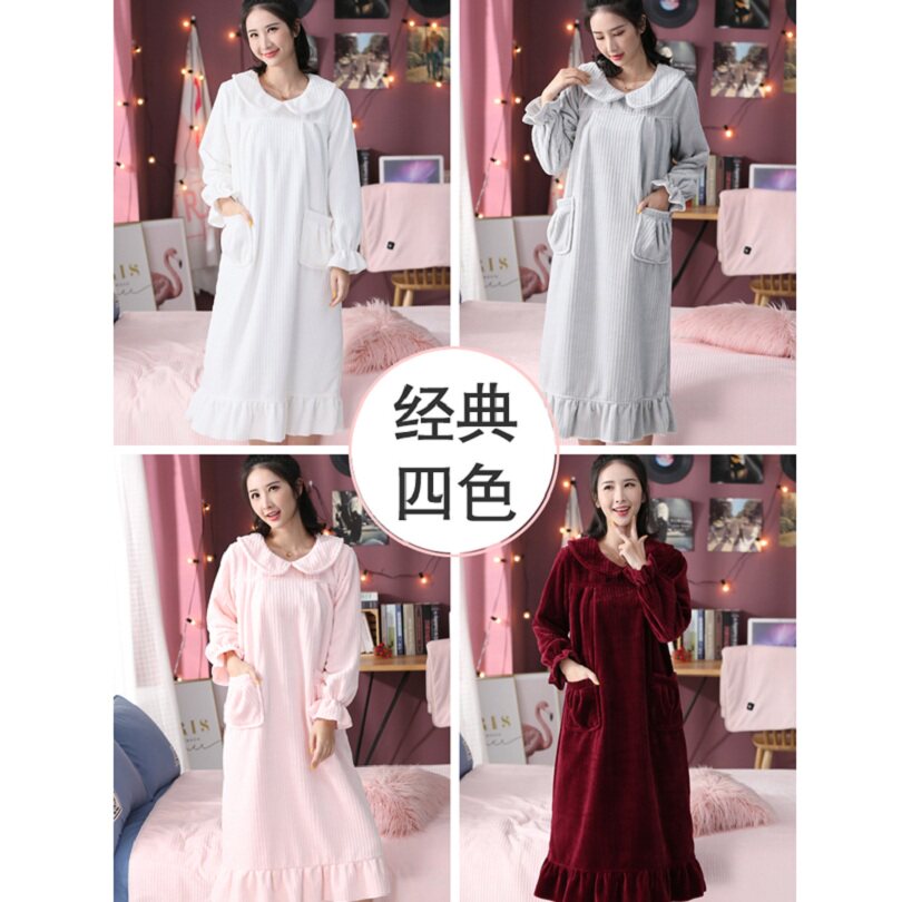 Sleeping Dress Lady Winter Long Version Long Sleeves Large Size Easy Pregnant Woman Long Skirt Princess Fall Coral Suede Sleeping Skirt can be worn outside