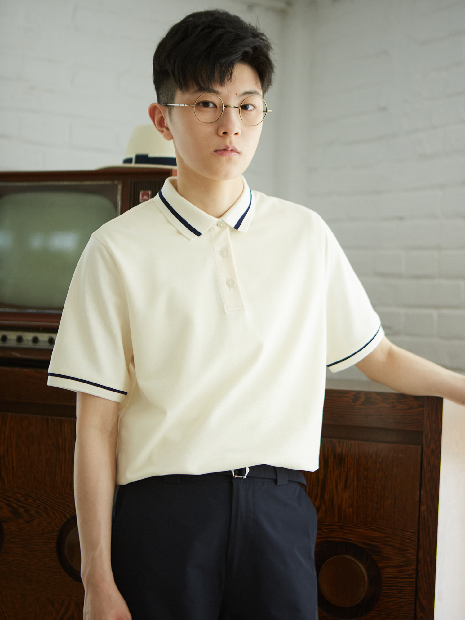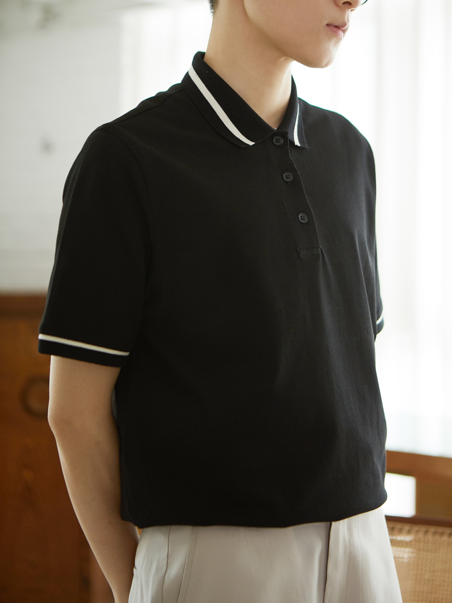 knighttom June summer black and white cotton breathable short-sleeved polo collar T-shirt unisex top short les handsome t