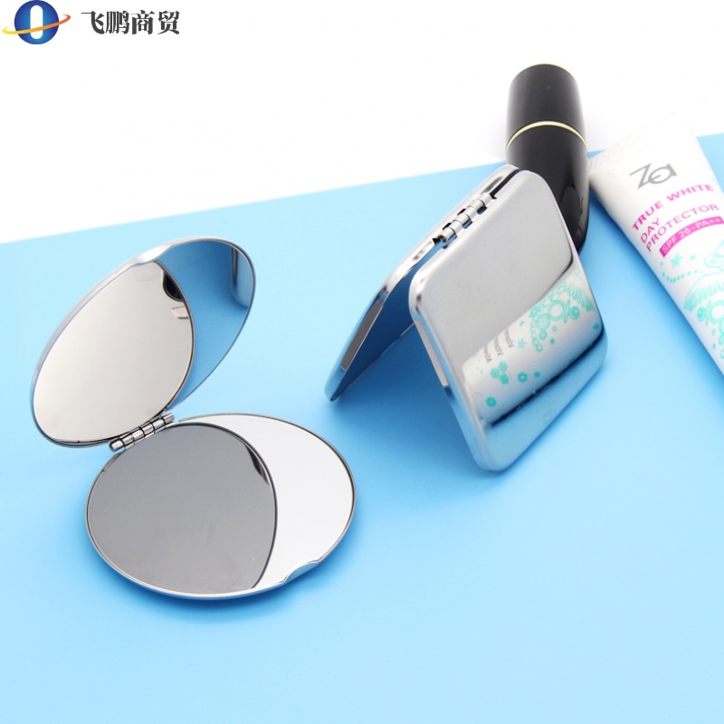 Carry-on Makeup Mirror Portable Stainless Steel Small Mirror Metal Female Handheld Anti-Fall Brief DOUBLE FACE PURE COLOR INS