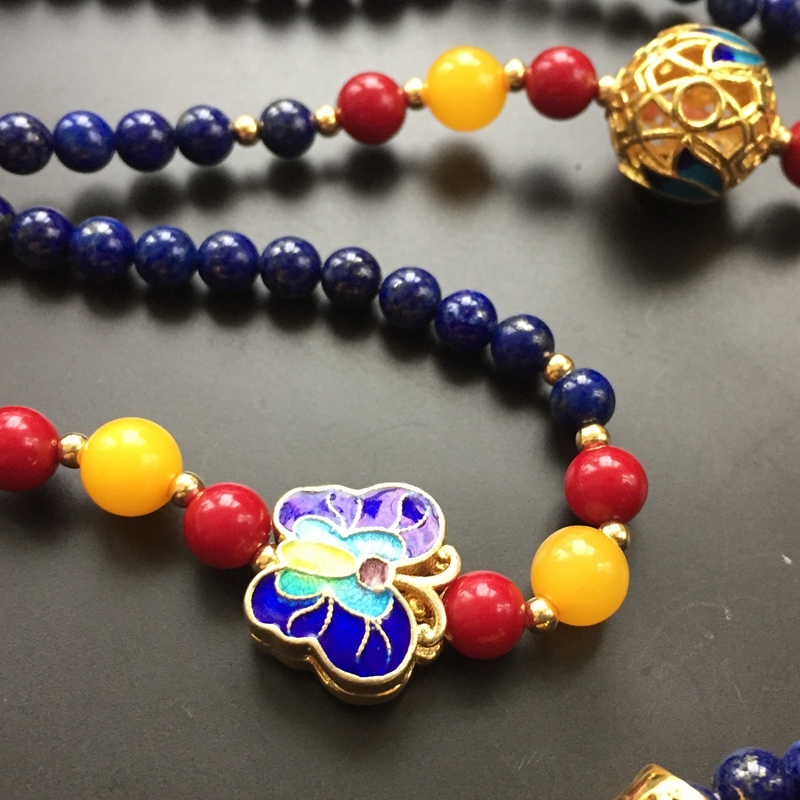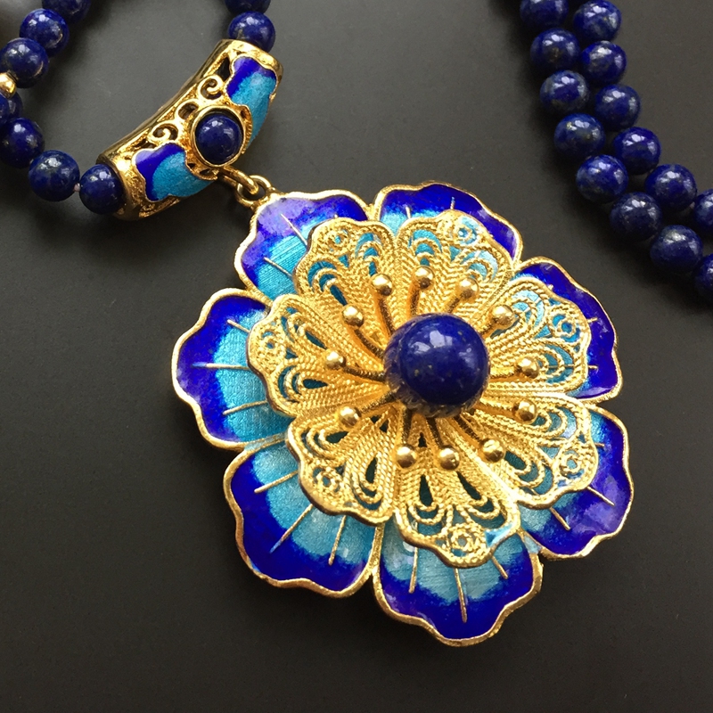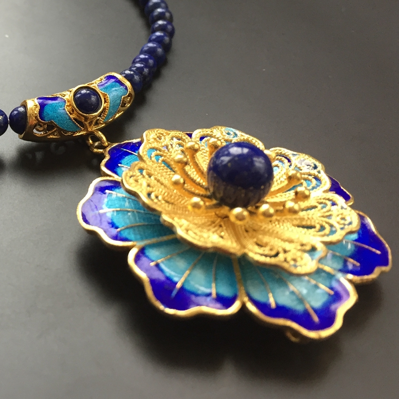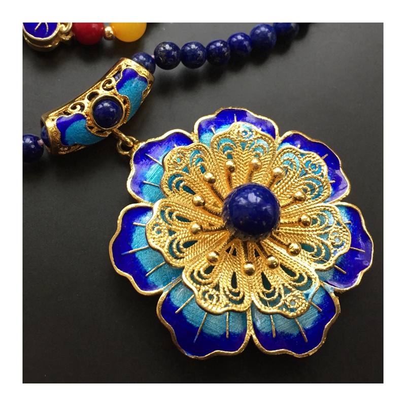 Pure silver gilded handmade flower silk enamel inlaid pendant beads with traditional non-relic process pendant DD24