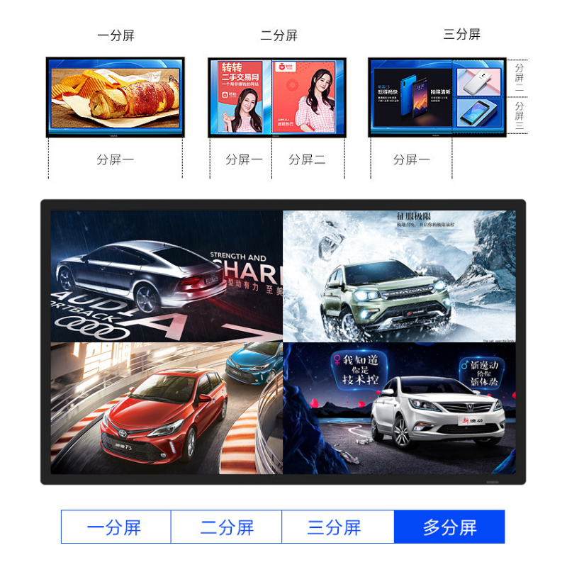 Can be horizontal screen or vertical screen intelligent split screen remote release intelligent circulation milk tea shop shopping mall restaurant shop advertising machine supports wall hanging hanging inlaid scrolling note promotion welcome mobile phone anti-control projection screen
