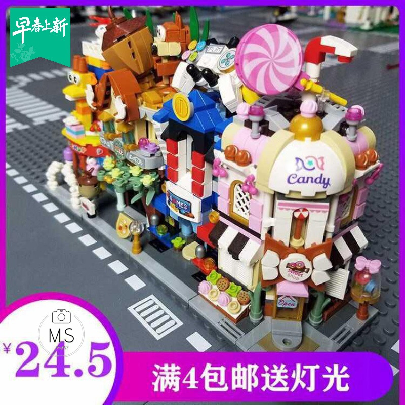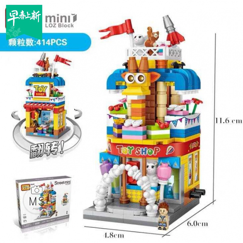 Orange 1727 jump machine light green 1730 hamburger shop light gray 1717 pirate ship 1622 store 1606 sweet shop 1621 cake shop dark green 17