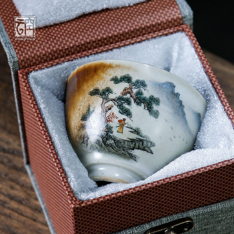 Empty cloud pure handmade landscape cup Jingdezhen ceramic master cup tea cup tea bowl kung fu tea set tea cup single cup