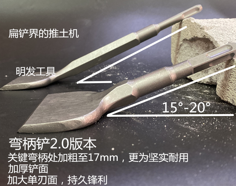 Electric hammer bending handle flat chisel flat shovel square handle square head 15° bending handle shovel shovel wall gray tile slot cleaning coating