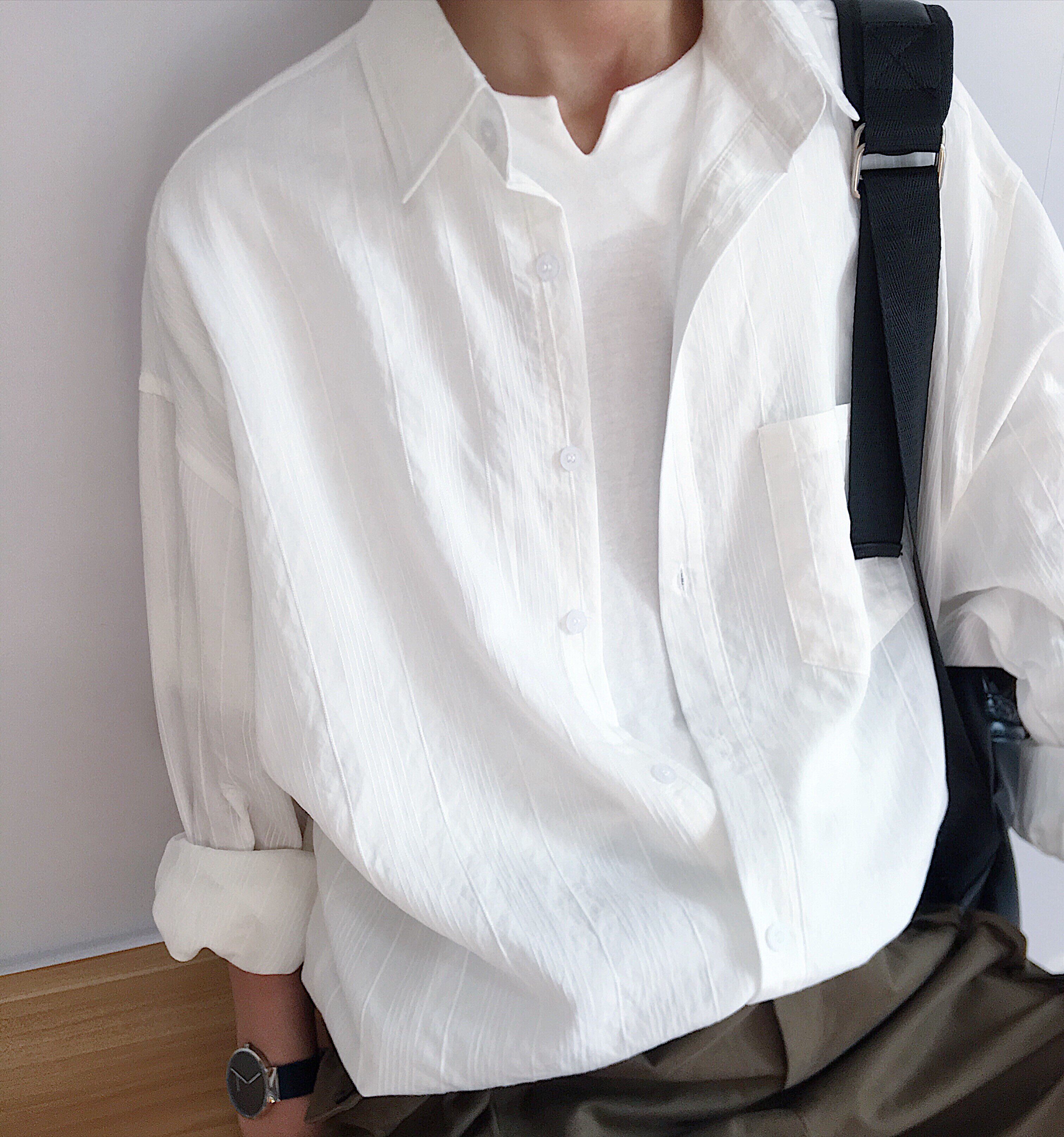 Hong Kong Boomer White Shirt Student Pendant Casual Men's Day Ensemble Shirt Long Sleeve Port Wind Pure Cotton Loose Design Feel