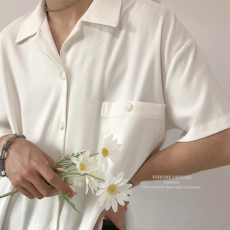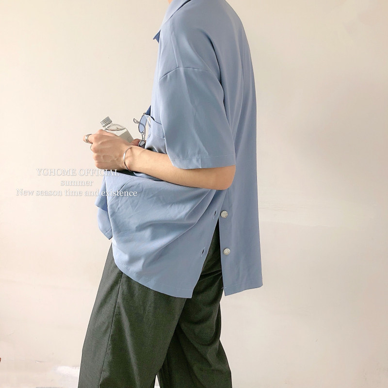 yghome design niche back split short-sleeved shirt men's summer casual loose all-match Korean style iron-free shirt