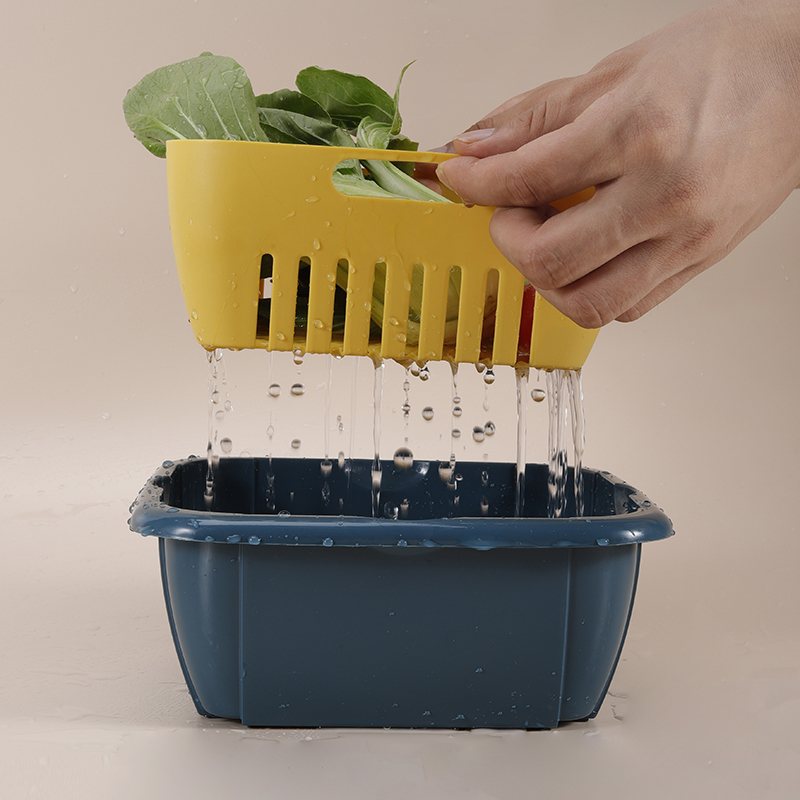 Household Kitchen Double Drain Basket Fruit Plate Frame Vegetable Pot with Cover Fresh-keeping Plastic Storage Box