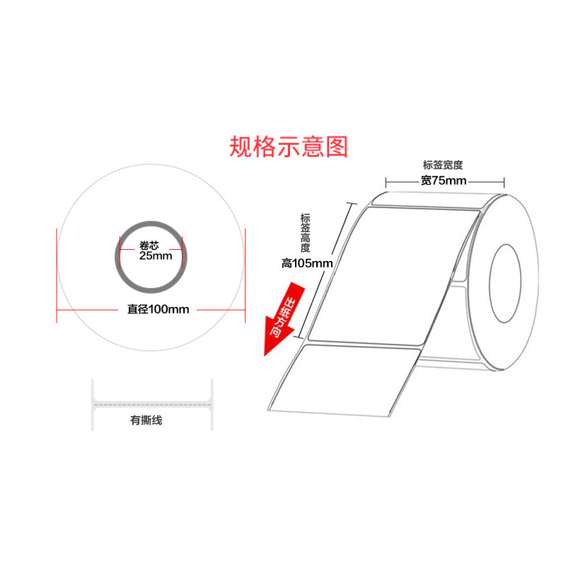 Cisenteda Thermal Photocopy Paper 75 x 105 x 500 Zhang Logistics Label Portable 70 sheets Single sticker excellent