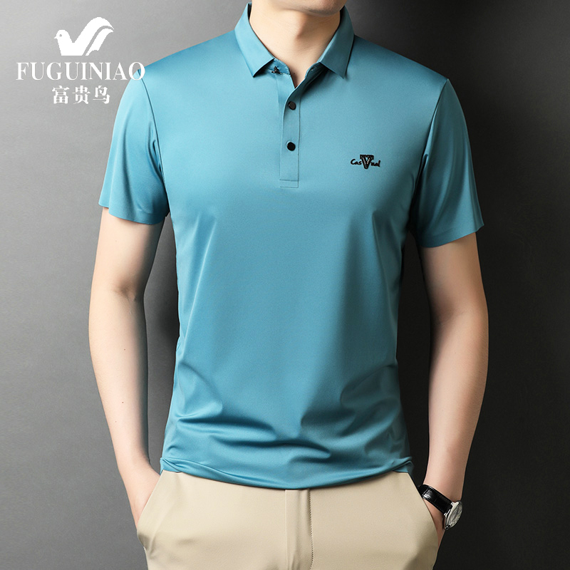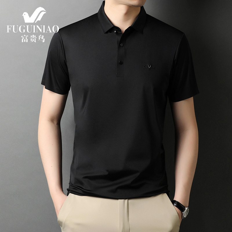 Rich bird silk cotton short-sleeved T-shirt men's summer thin business casual men's polo shirt ice silk lapel loose