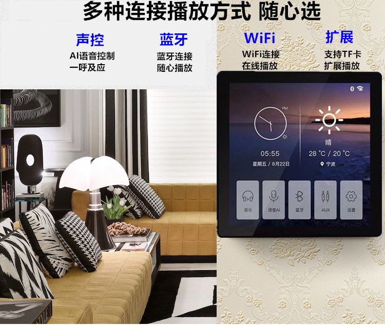 86 voice background music host 4 inch screen AI control intelligent audio 86 type Bluetooth WIFI networking