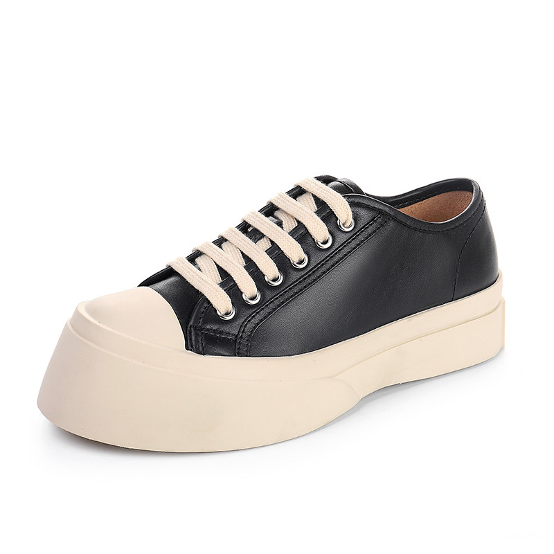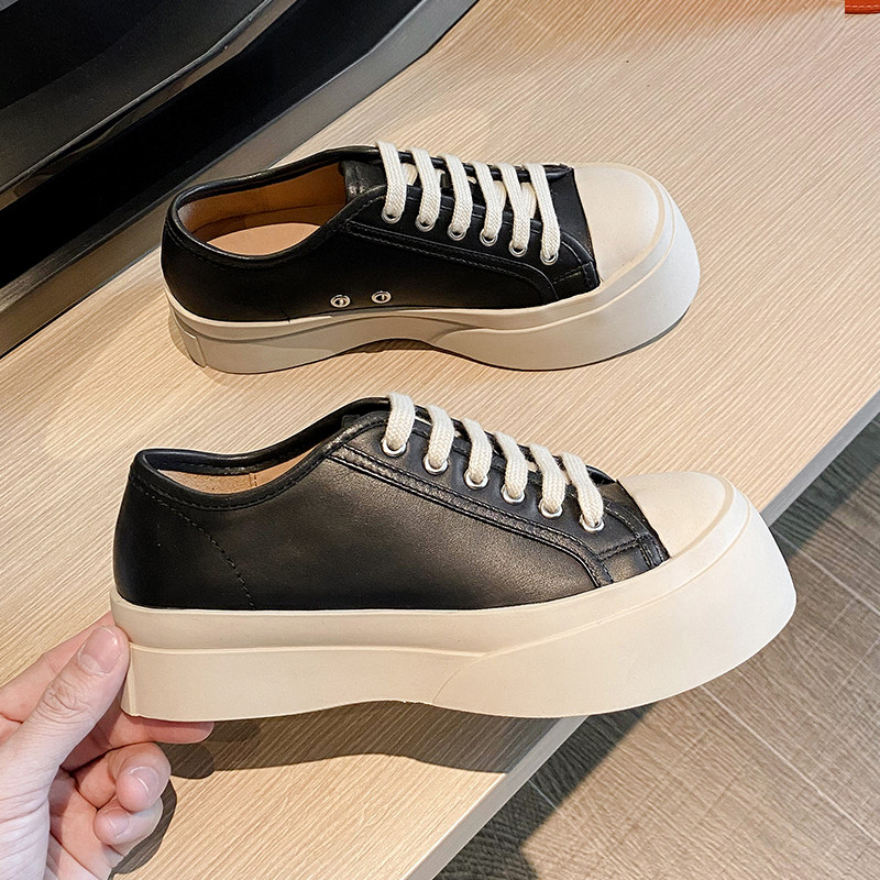 Net Red Ashigago Mona Tong Shoes 2022 Spring Single Shoes Genuine Leather Pine Pastry Thick Bottom Lace Big Heads Little White Shoes Woman