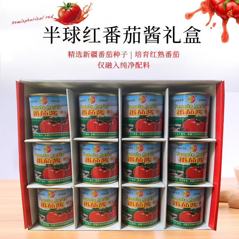 Hemisphere red Xinjiang tomato sauce 12 jars of gift box with fresh straight douche for home small canned raw iron jars with high concentration
