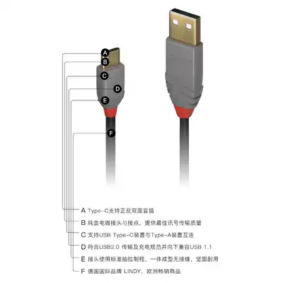 Germany LINDY Anthra series type-c 2 0 data cable p20p30 mobile phone mate glory charging cable