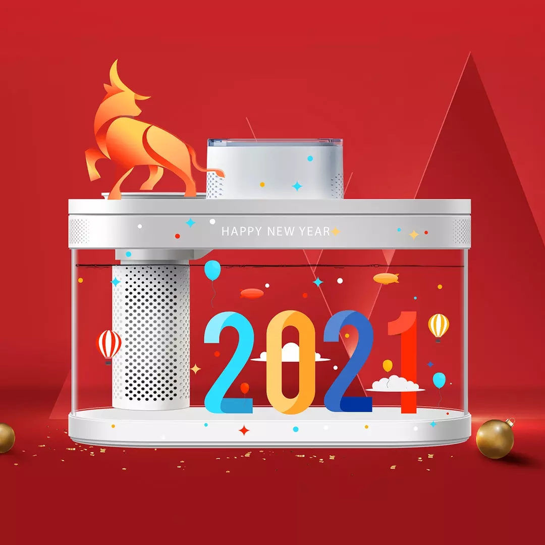 Drawing geometric fish tank lucky amphibious ecological lazy goldfish tank free water change landscaping living room creative aquarium