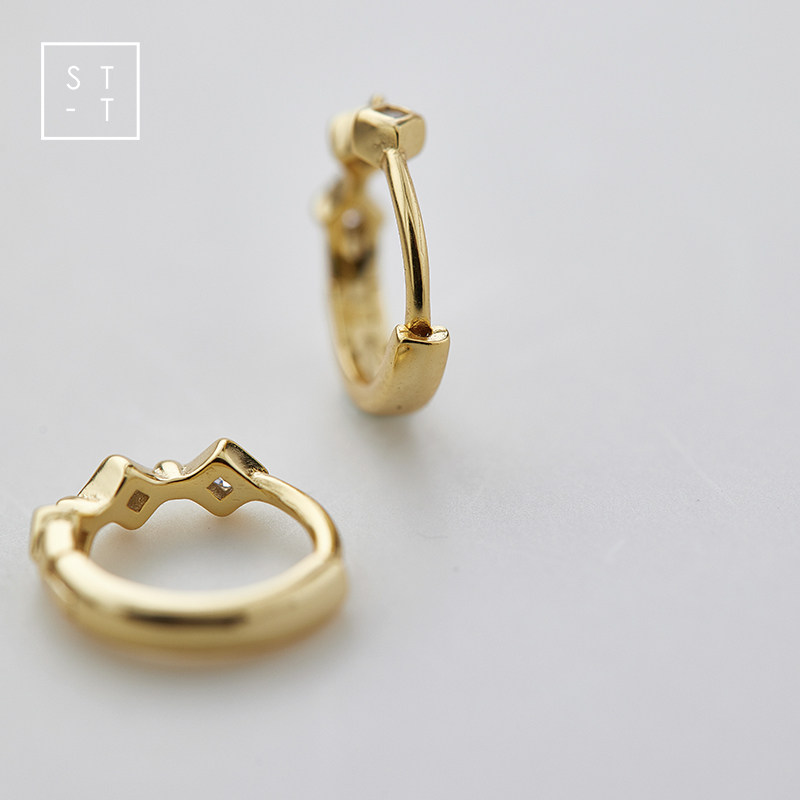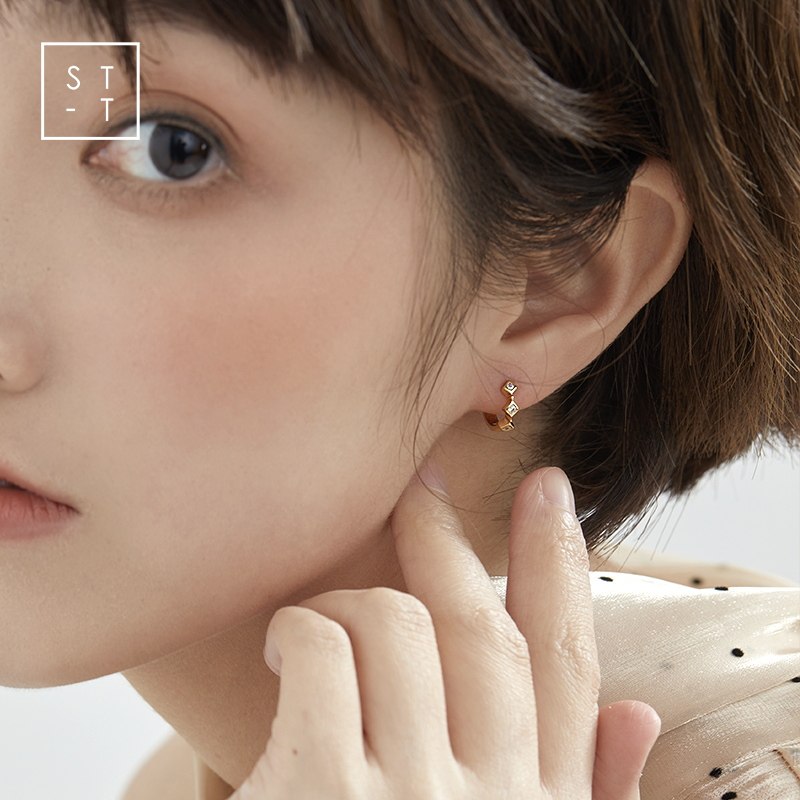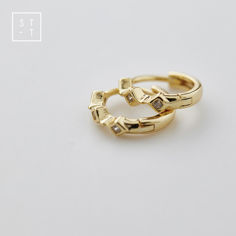 Mrs. Shen S925 pure silver personality ear ring rhombus ear button female retro port Wind fashion design white collar temperament ear decoration