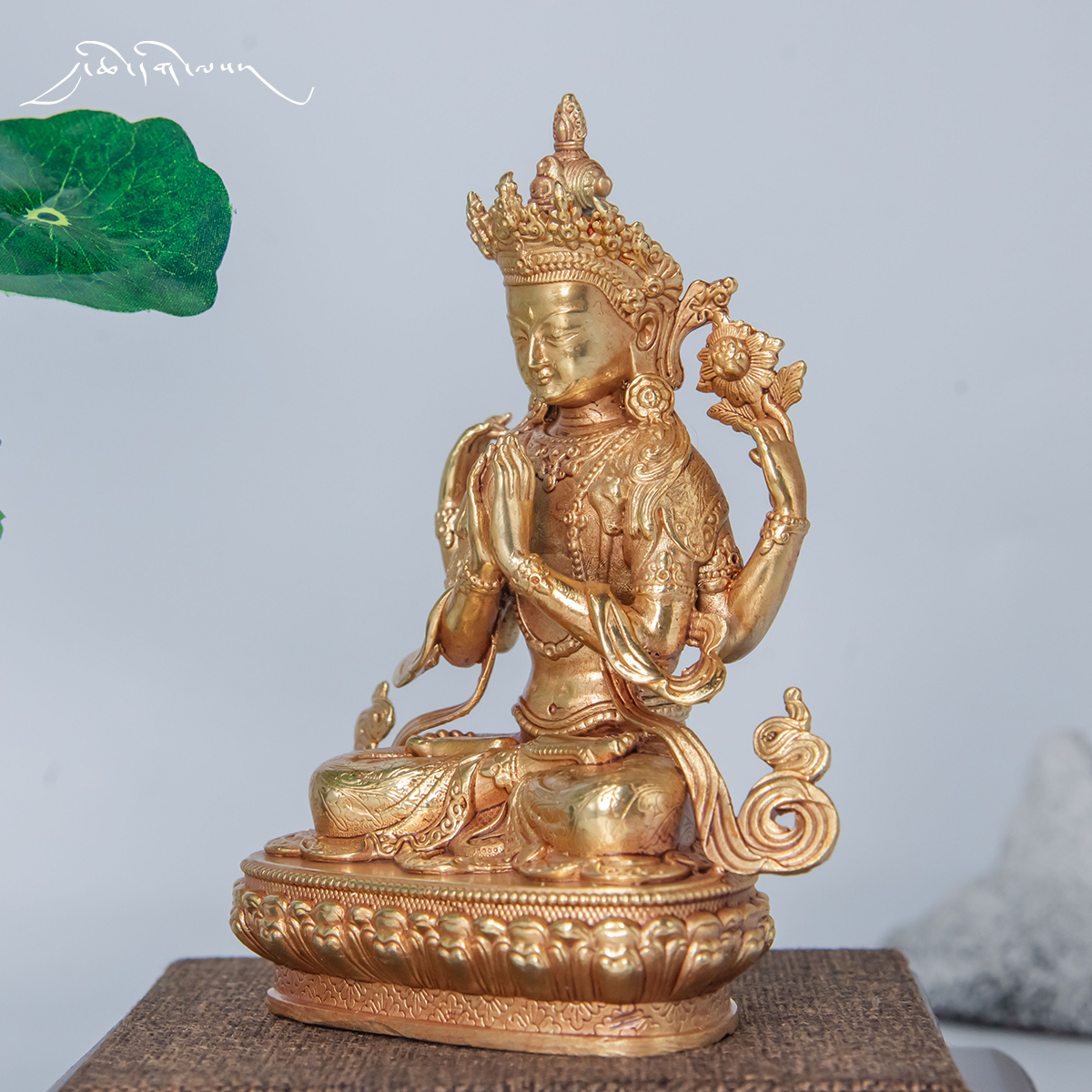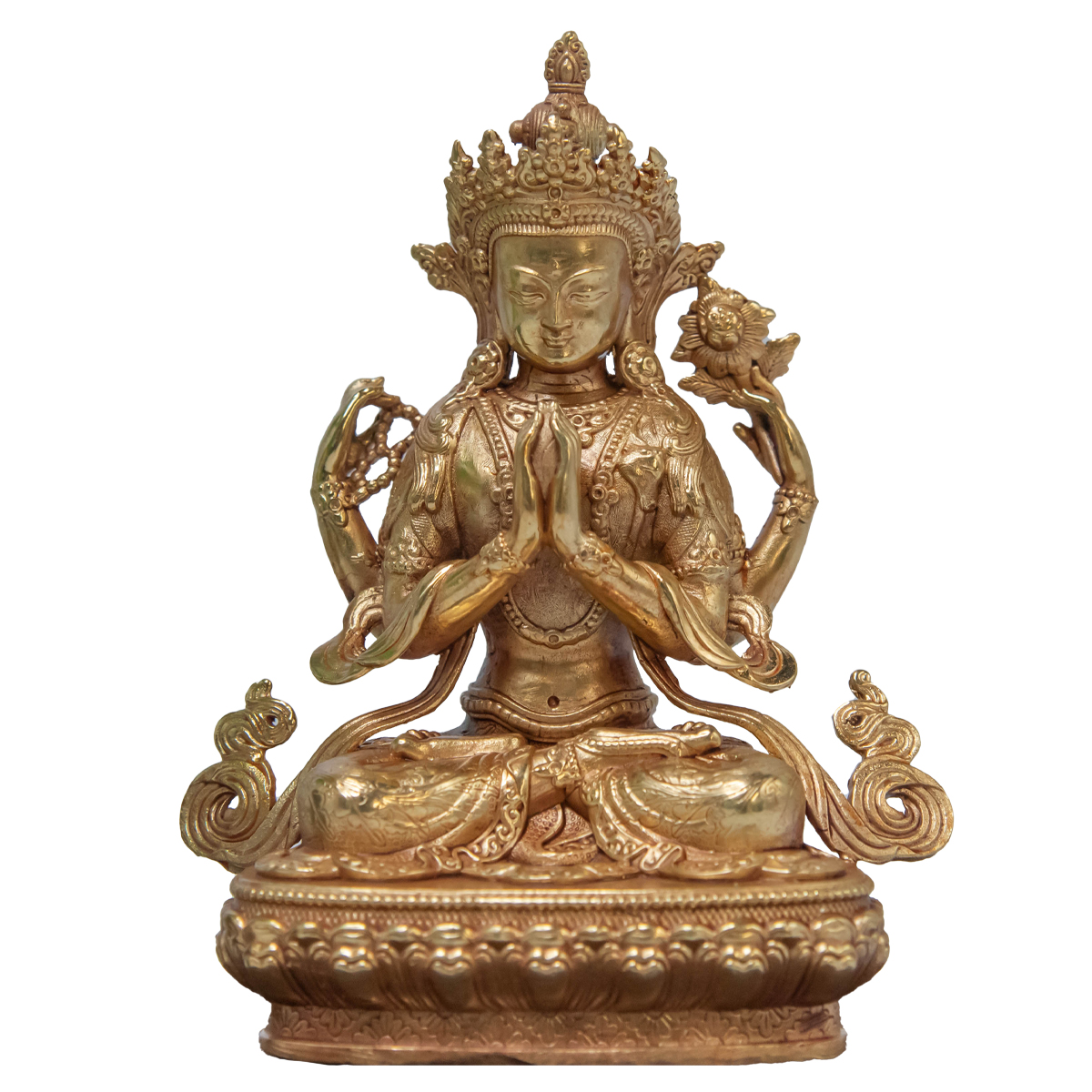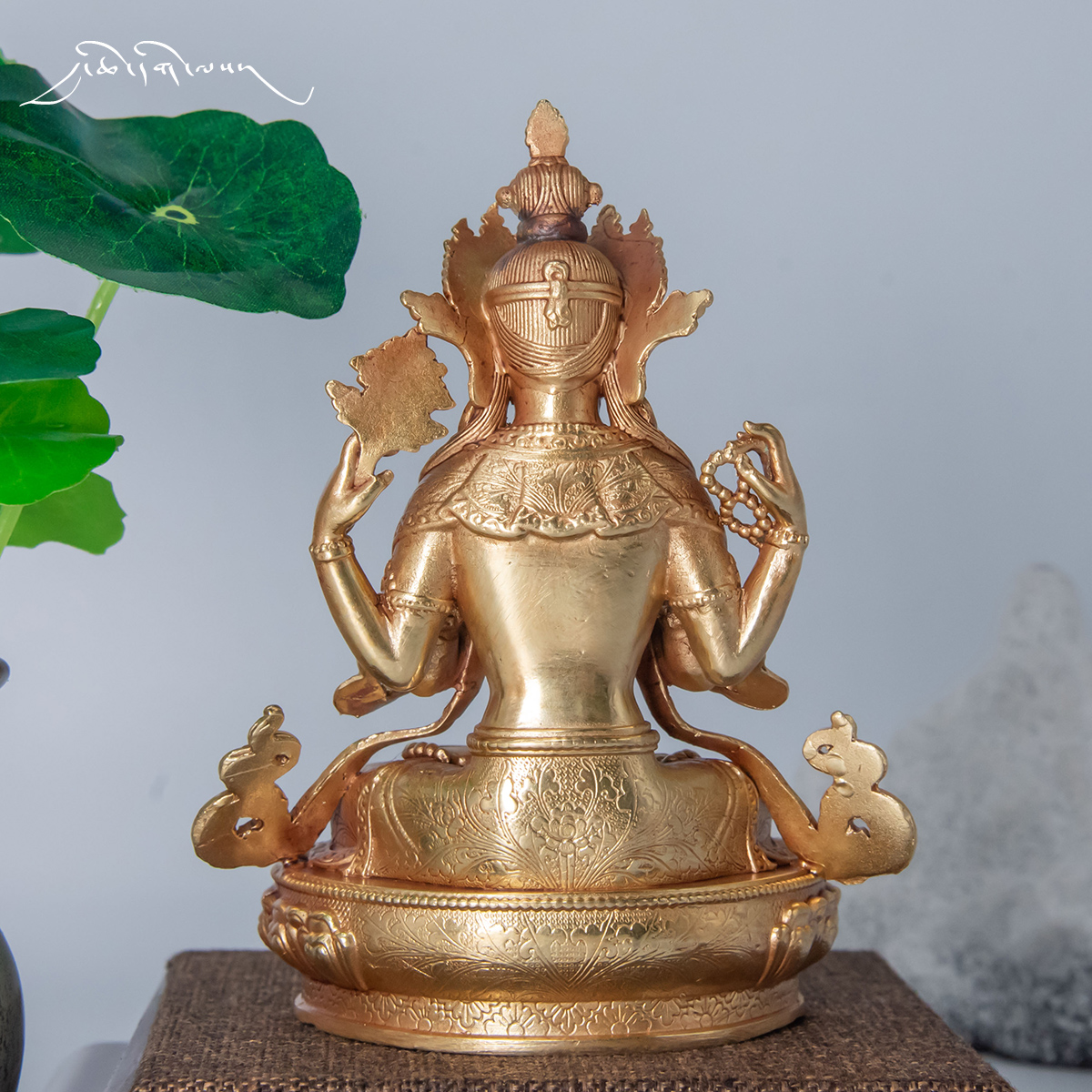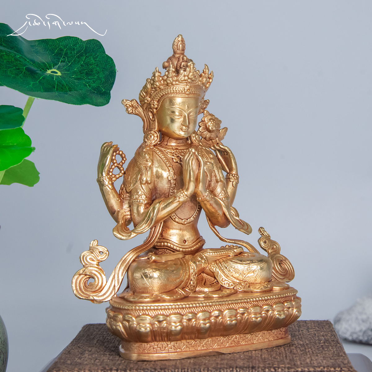 Tibetan characteristic technology 3 inch 10cm four arm audio small Buddha like pure copper tight gold swing parts