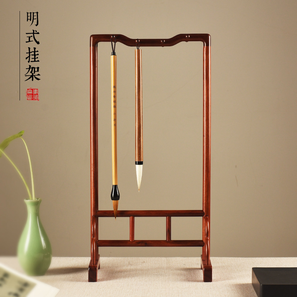 Hui Xin Zhai Mahogany Ming-style simple pen hanging Height 8-pin brush holder Indian rosewood brush hanger Student entry solid wood hanging brush shelf Literary room four treasures retro creative ornaments