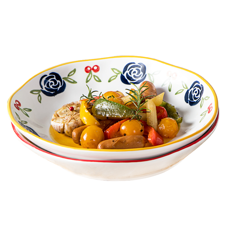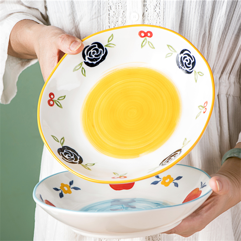 Shallow mouth irregular plate small fresh plate 8 inch deep plate household ceramic creative personality salad fruit plate