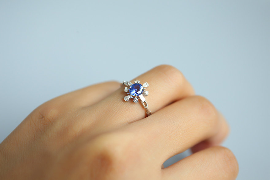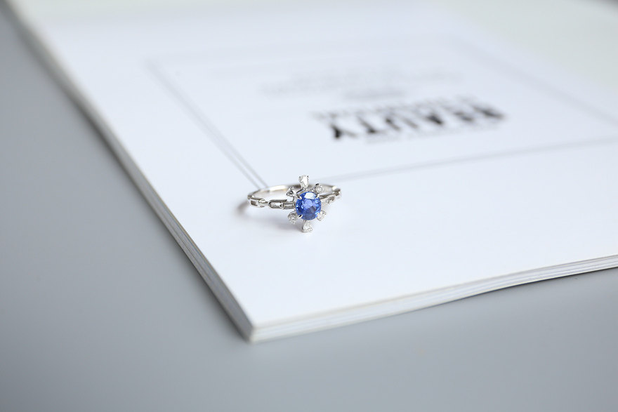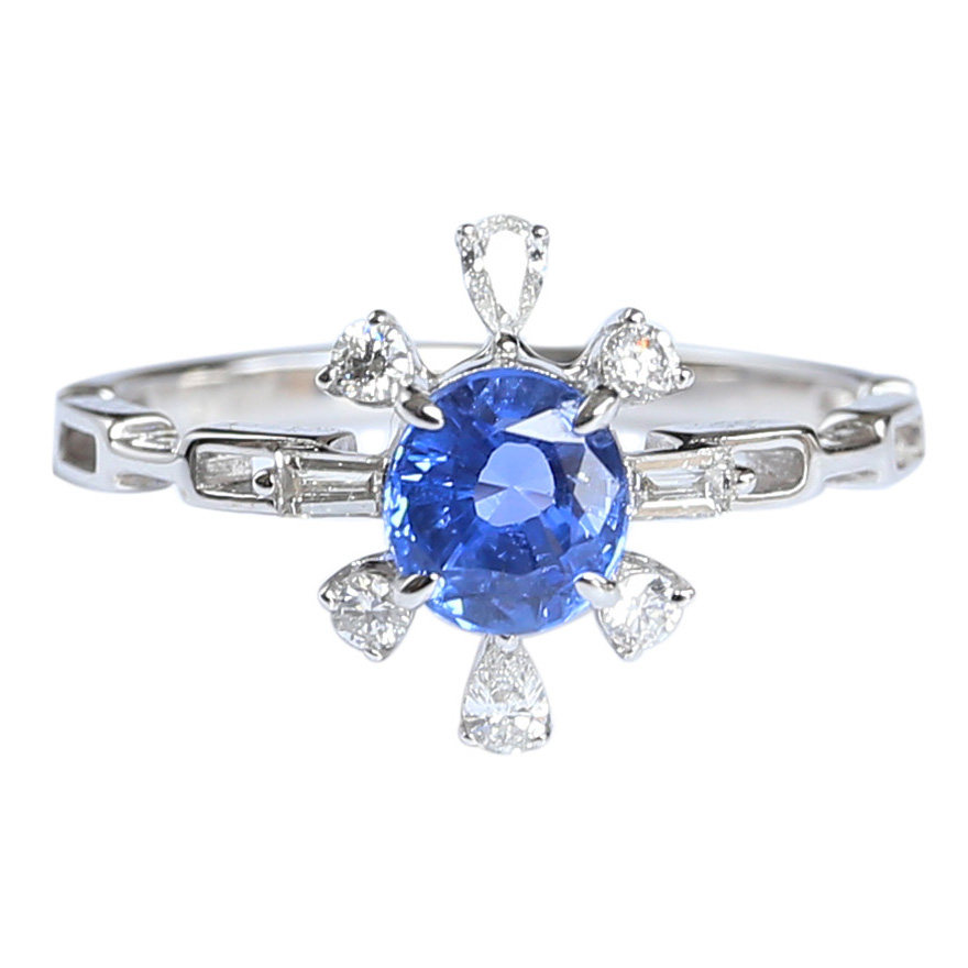 (Full Sky Stars) 0 85 Clay Sapphire Female Ring 18K Platinum Diamond Studded Jewelry Gift