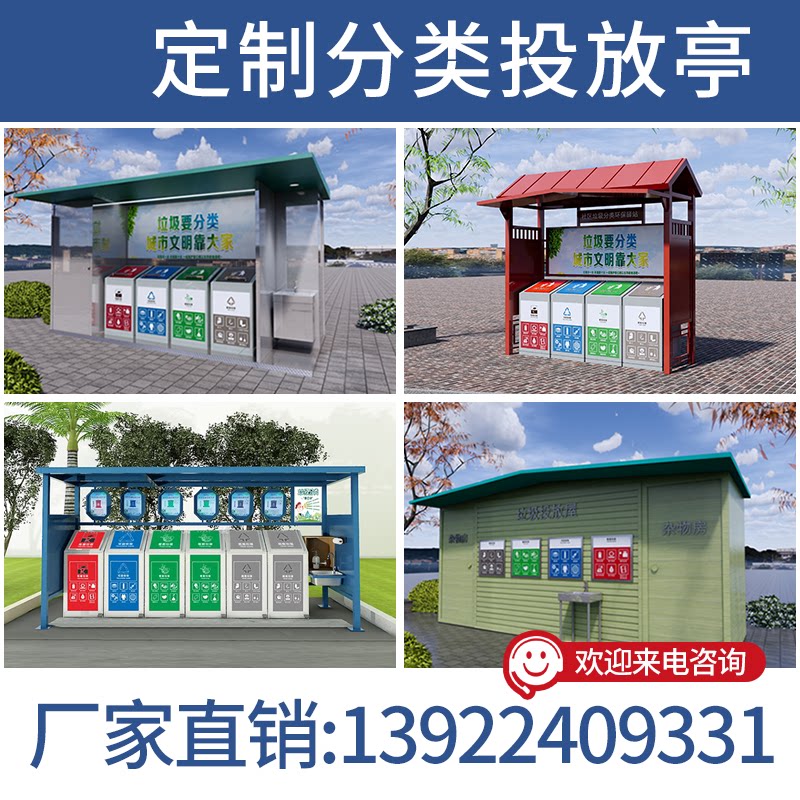 Outdoor Trash Sorting Kiosk Street District Fashion Public Trash Placement in stainless steel Garbage placement in house Custom