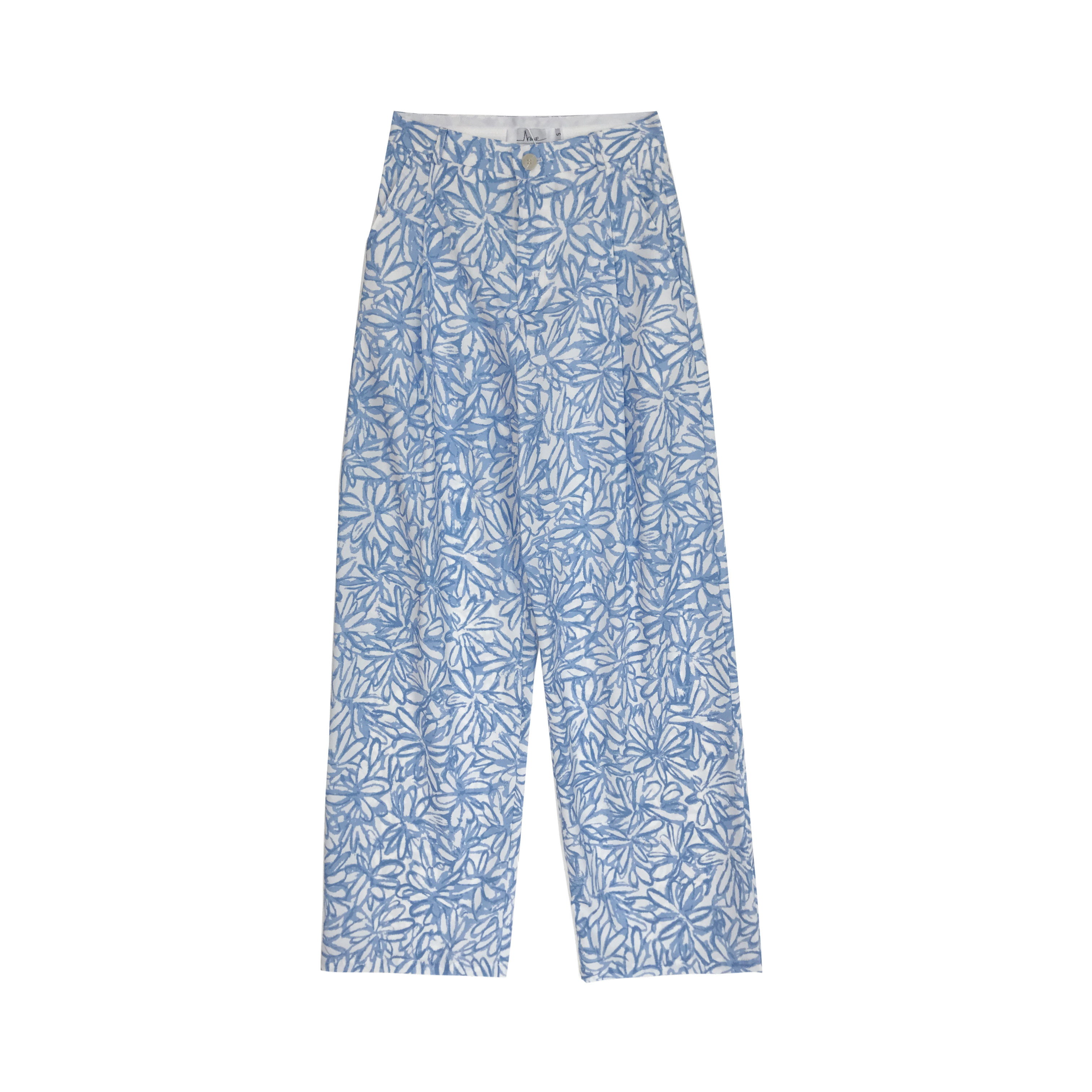 The female pants are high in the waist.: