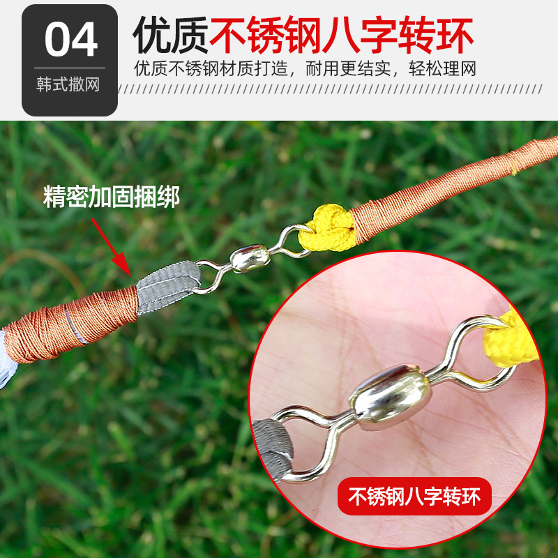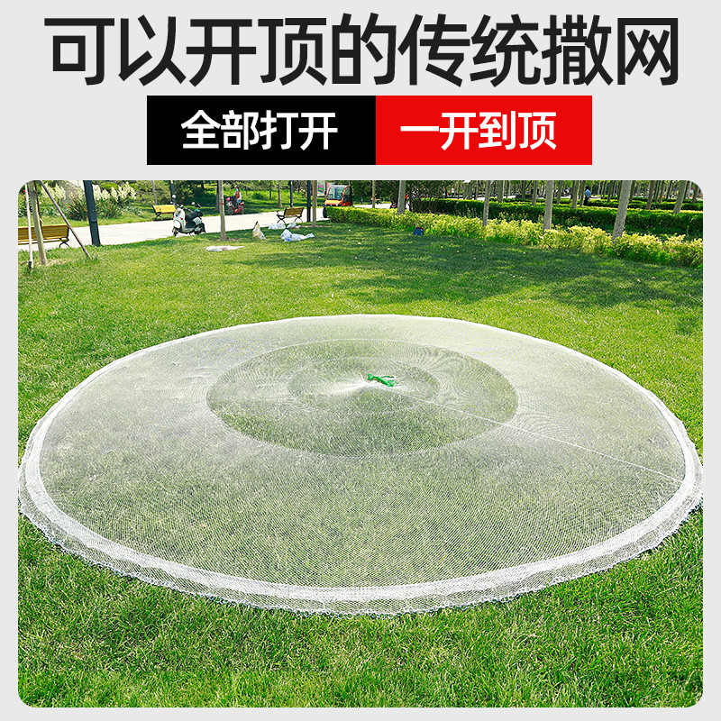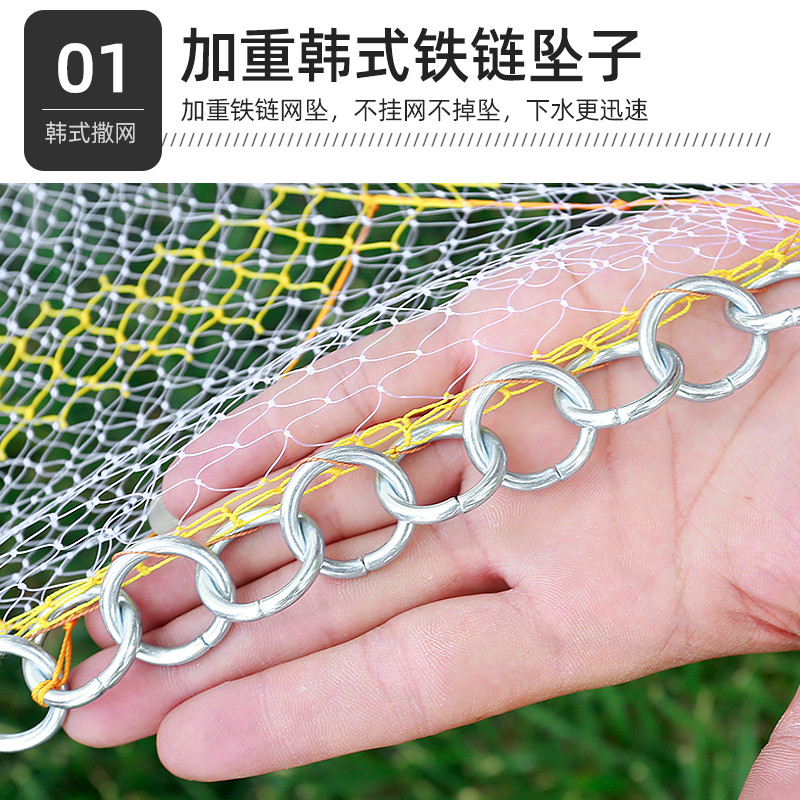 Han-style traditional iron chain hand Sarnet hand cast net white strips net hand throw easy throw mesh small mesh spin mesh fishing net fishing net