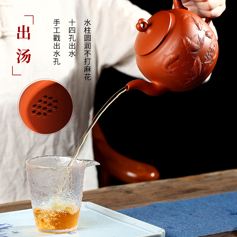 (Nine Fish Fig.) Zhu mud Grand Ppot Yixing Virtuosi Zhou Xiaozhong's works (Rui Gas in Xiangxiang) Zhu mud large pint pot Yixing family members Zhou Xiaozhong's works