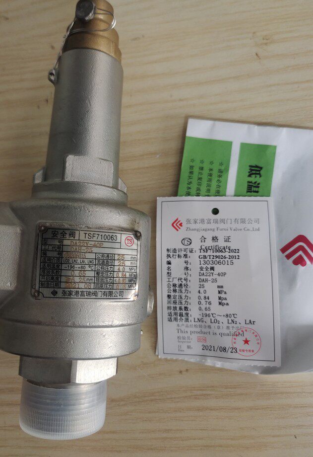 Zhangjiagang Furui low temperature safety valve DA22Y-40P DA21F-40P storage tank pressure relief valve Exhaust valve