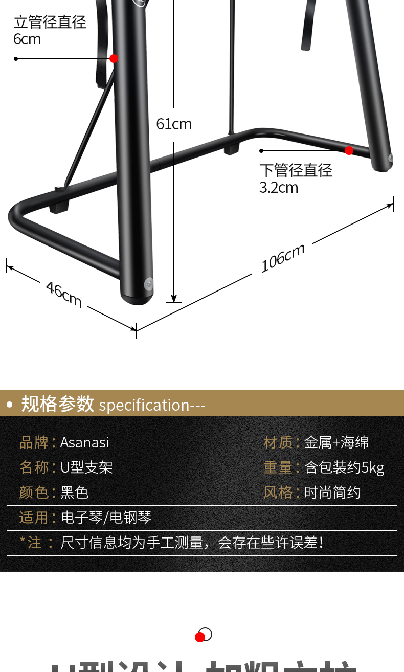 Electronic keyboard U-shaped piano stand electric piano X-frame keyboard synthesizer keyboard tired instrument rack universal type stand