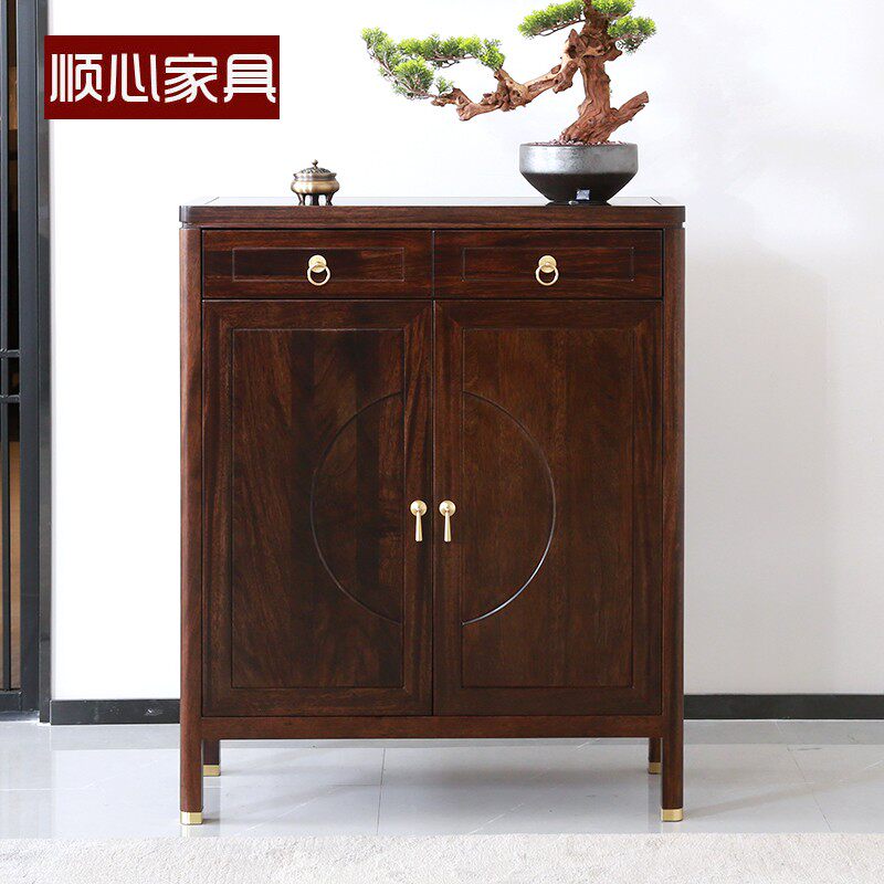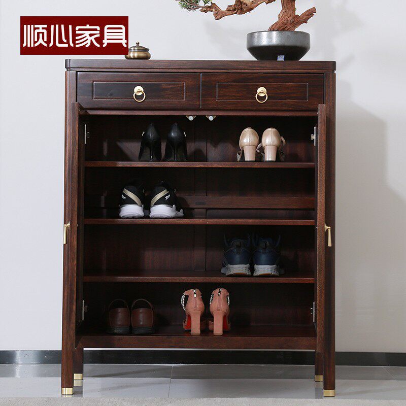 Shunxin furniture solid wood shoe cabinet home door shoe cabinet saves space and large capacity into the door Wujinmu new Chinese shoe cabinet