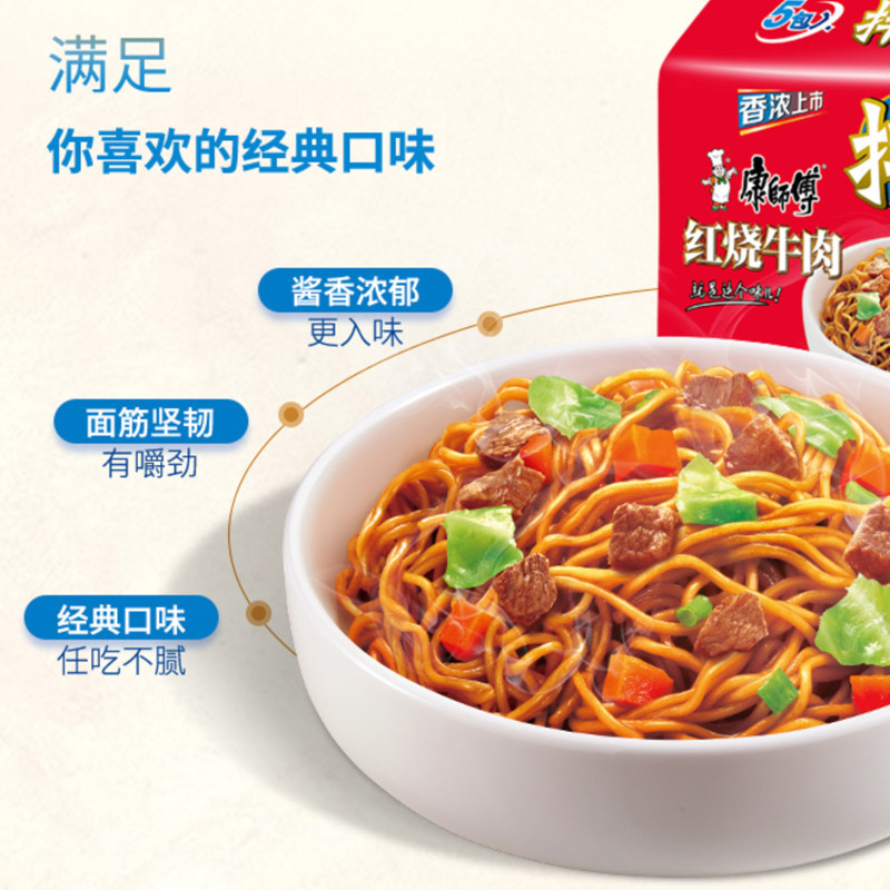 Master Kong's instant noodles dormitory eat instant noodles 15 bags full box of instant dry mixed instant noodles braised spicy beef