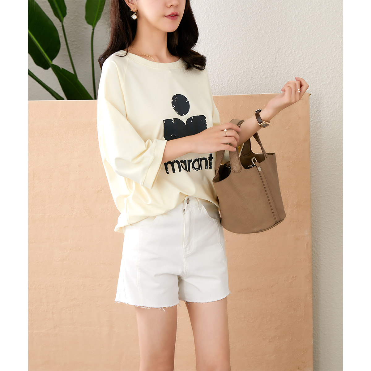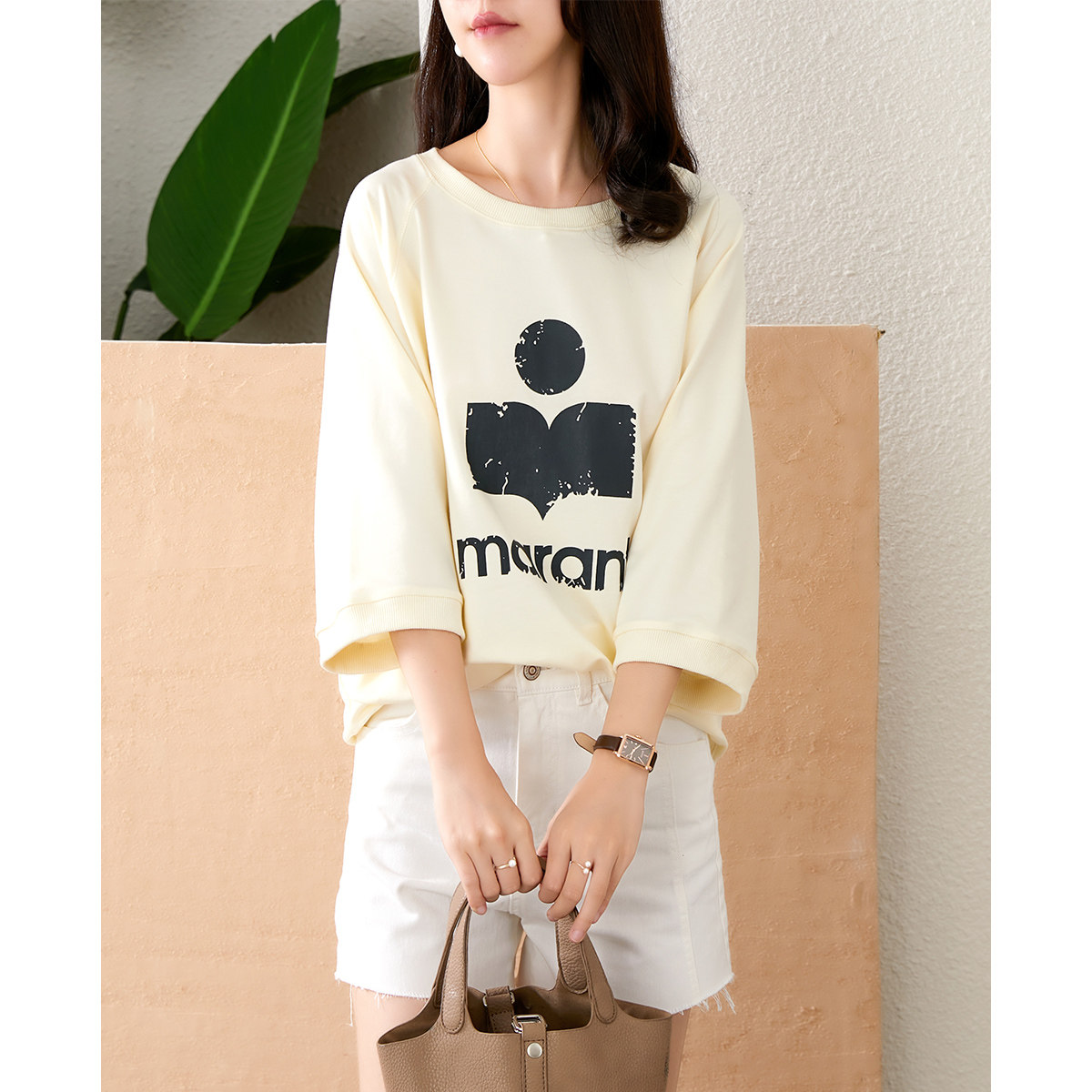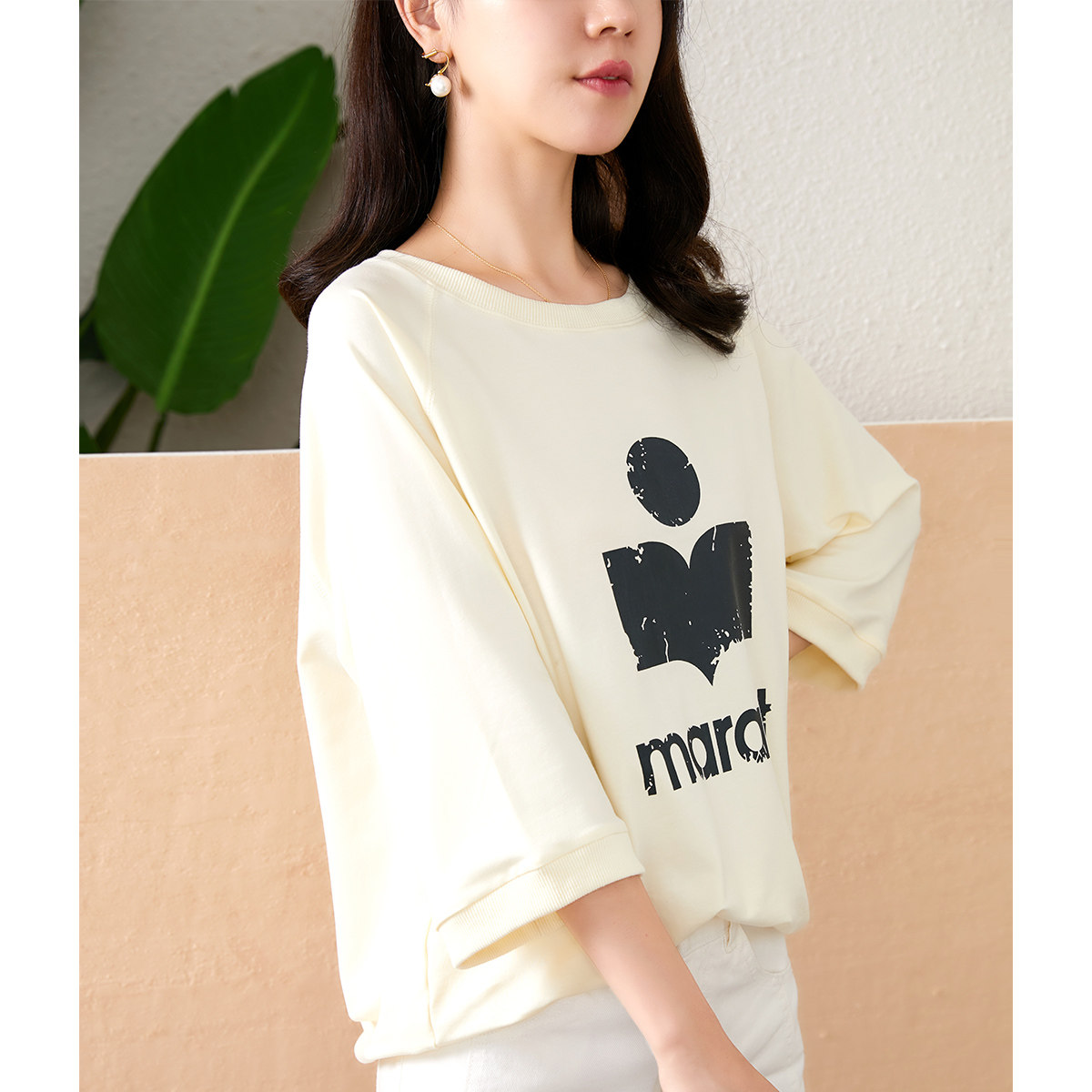 U Home 70% Sleeve T-shirt Woman 2022 Summer New Korean version loose Thin Letter Printed Casual Lady Blouse