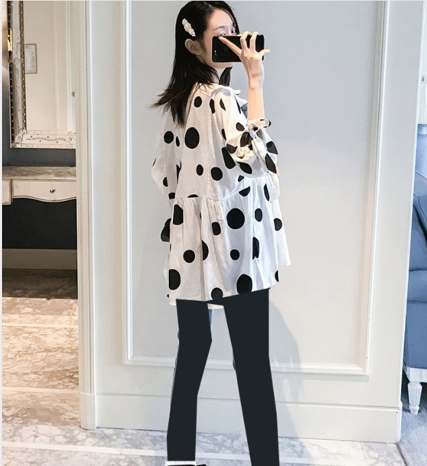 Single piece of polo dot blouses version with a large size
