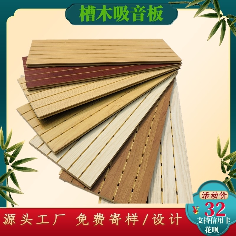 Slot-hole wooden sound-absorbing board Fire-retardant environmental protection board Wall decoration conference room school auditorium