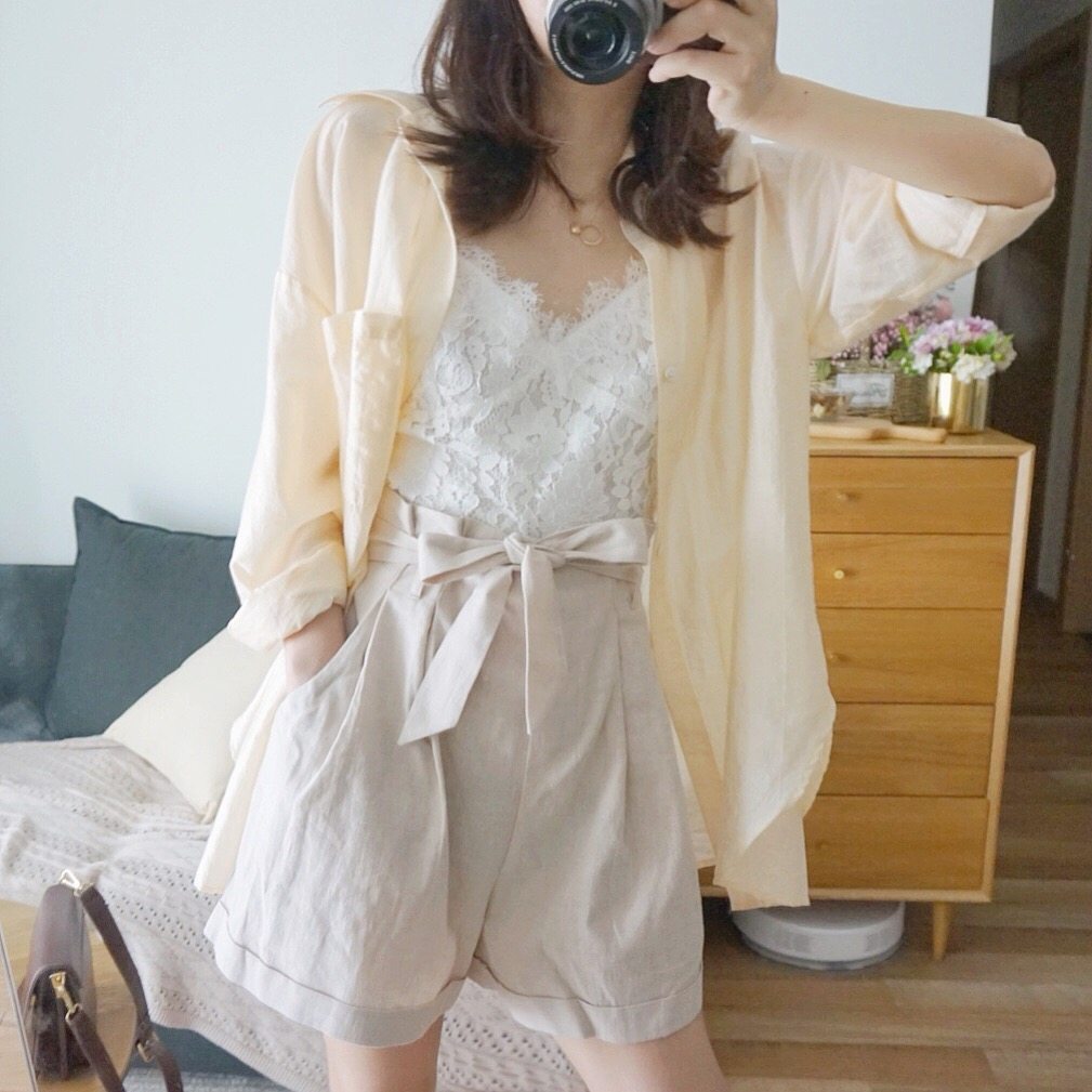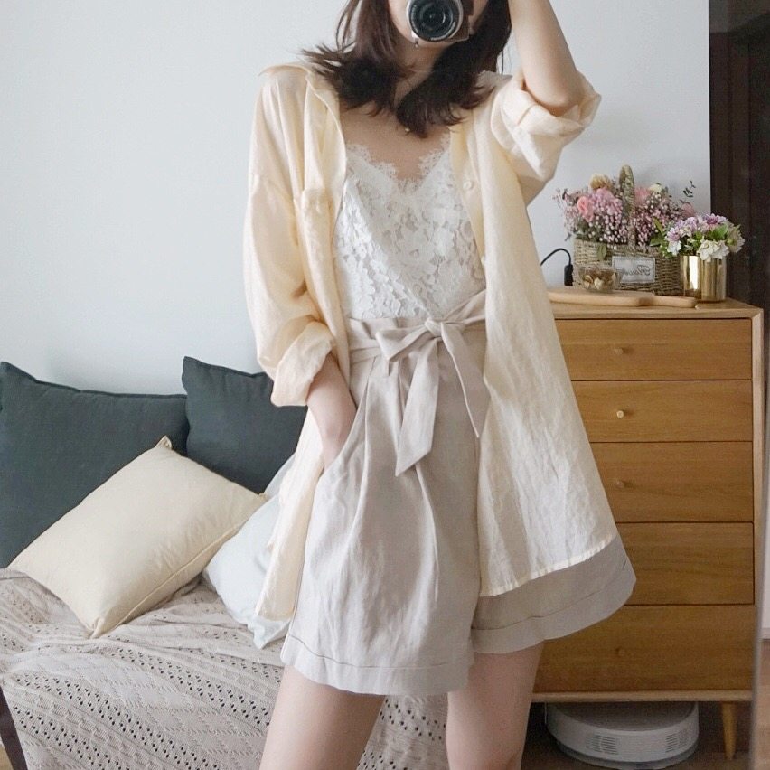 Fan Squad Breathing Shorts Natural Linen Cool Slim Shorts Free Belt