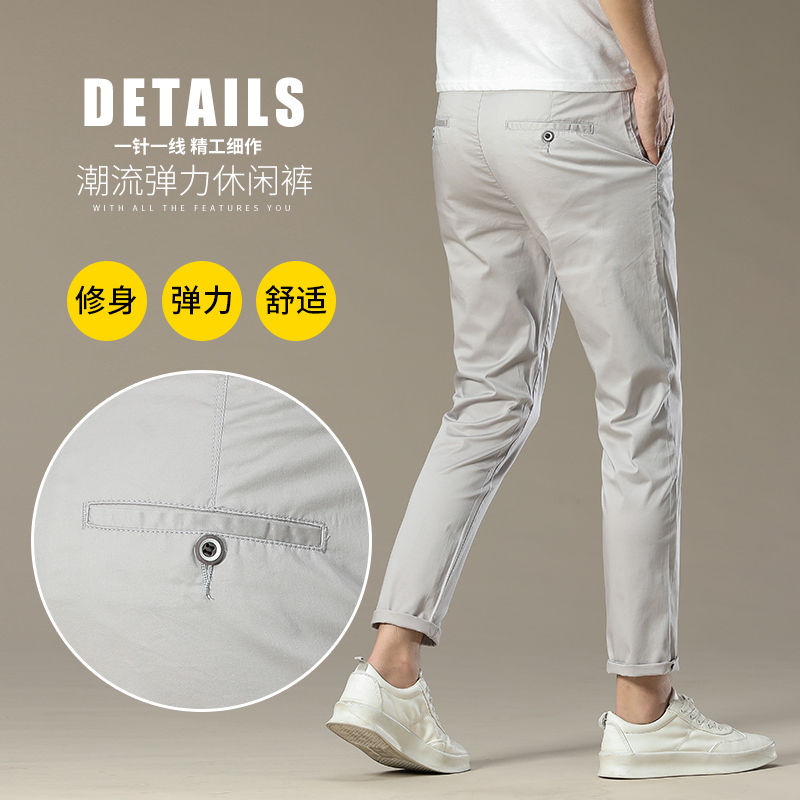 Pants men's summer thin nine-point pants stretch slim fit trend versatile men's casual pants straight nine-point pants men