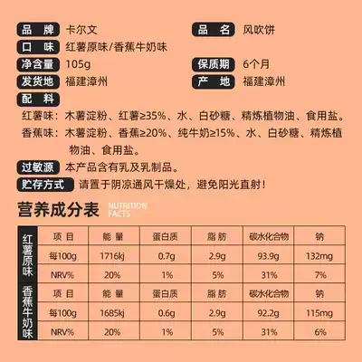 Calvin wind blowing cake Vitality sweet potato cake Handmade crispy tile pancakes Fujian specialty 105g box shot 1 shot 2