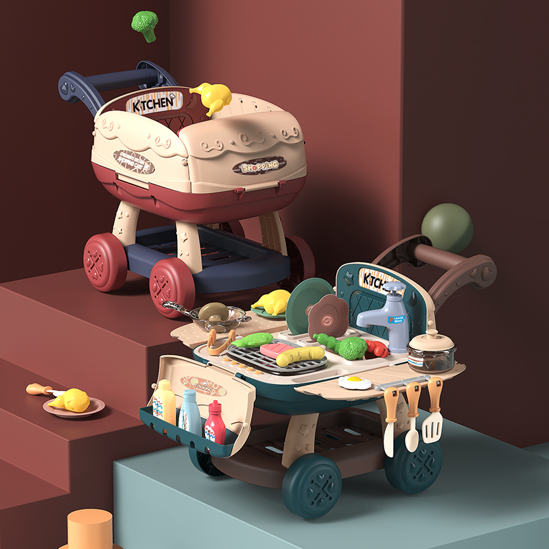 Simulation kitchen home baby shopcart cooking table children kitchenware boys and girls cut fruit toys