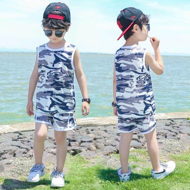 Boys sleeveless suit summer ice silk vest outer wear quick-drying mesh ultra-thin camouflage suit for children and children