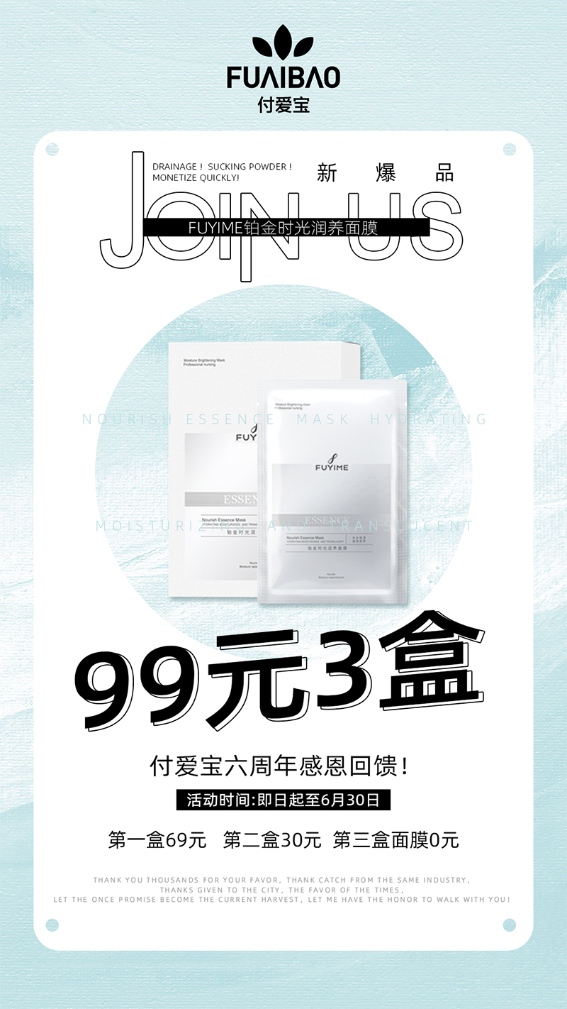 Fu Aibao Platinum Time Moisturizing Mask New Product Fu Yumin Revitalizing Moisturizing and Clear Mask