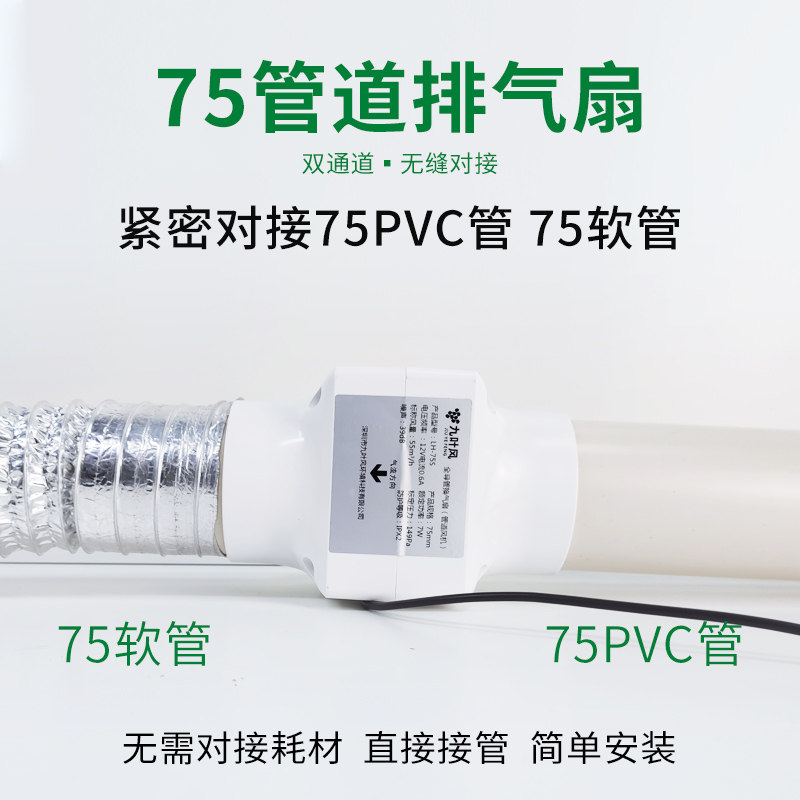 75PVC Mini small 12v pipe fan 75mm Caliber 3 inch exhaust fan strong smoke suction fan