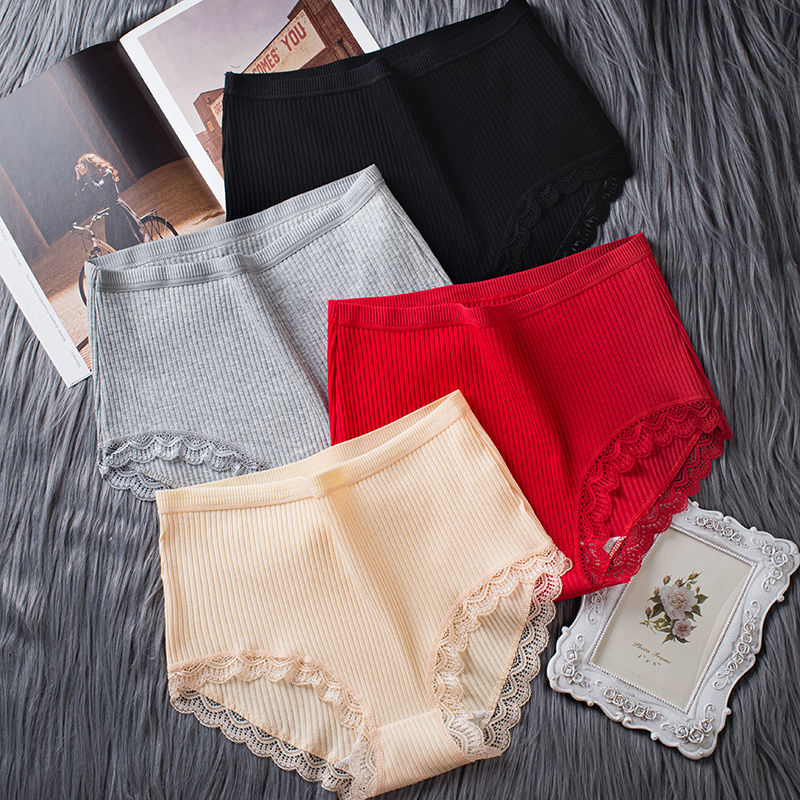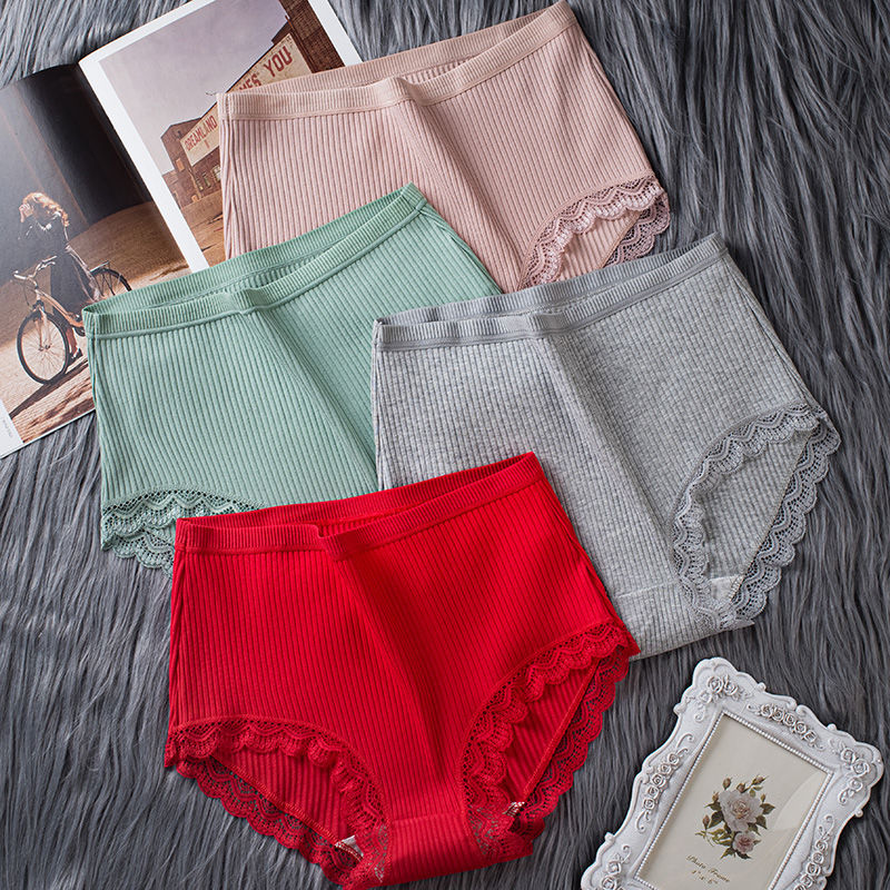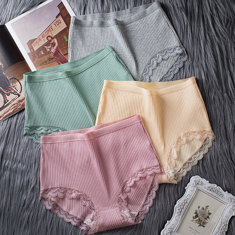 1-4 high waist underpants female casings sexy lace ladies big size Fat mm middle waist triangular safety pants without marks