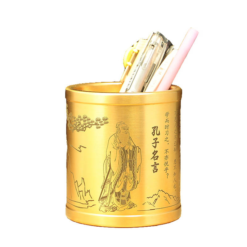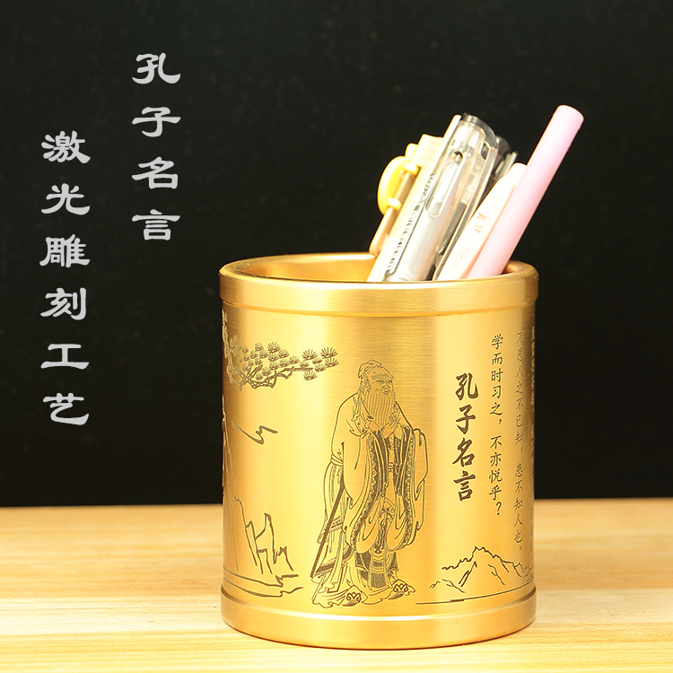 Brass pen container pure copper ornaments Confucius pen container boutique high-end business gifts for leaders desk stationery supplies