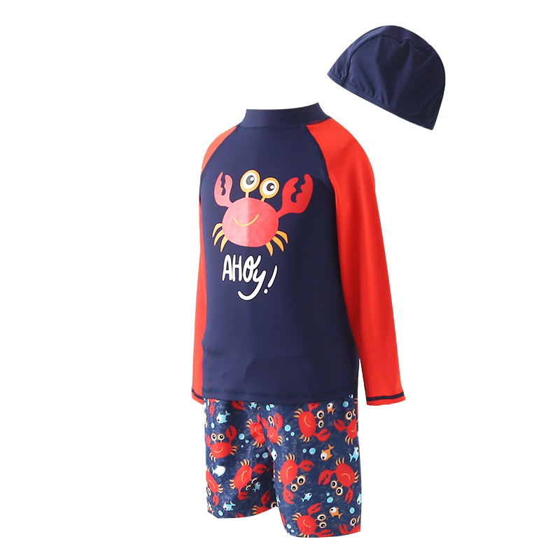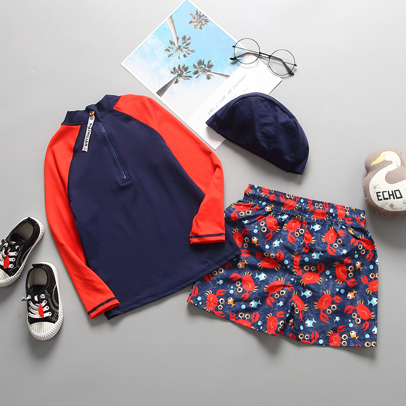 Korean children's swimsuit boy split long-sleeved sunscreen swimming trunks suit for children and babies cute crab swimsuit