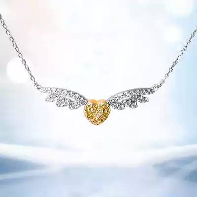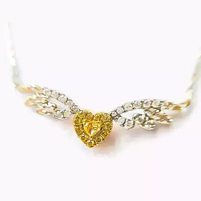 18K gold diamond necklace Yellow diamond necklace love wing pendant Yellow diamond ring inlaid clavicle chain Yellow diamond necklace customization