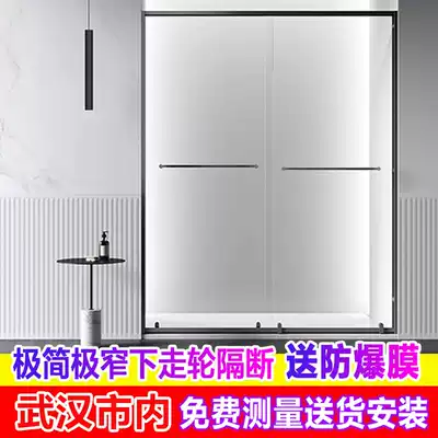 Skind shower room partition whole bathroom glass household powder room dry and wet separation very narrow sliding door bath screen